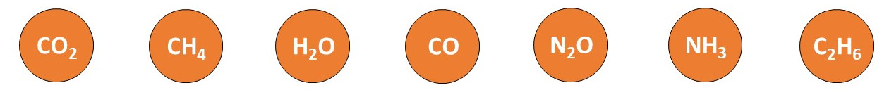Measurement of carbon dioxide, carbon monoxide, methane and water vapor.